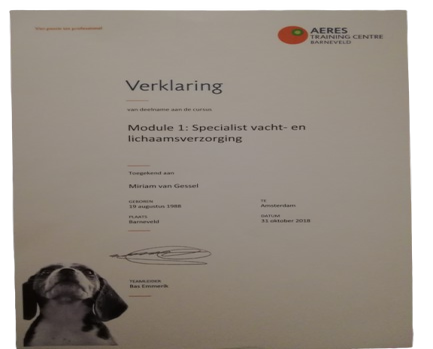 - Oktober 2018: Module 1 Vachtverzorging, gevolgd aan het Aeres Training Centre in Barneveld