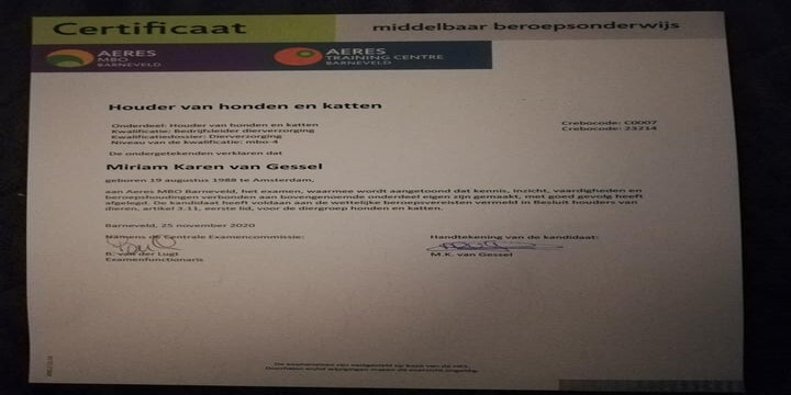 2020 eigendomsbesluit voor honden en katten, door Aeres Trainingcenter Barneveld
